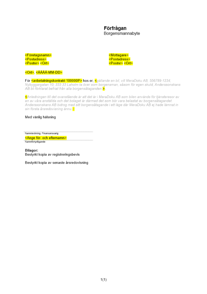 Produkter taggade med 'borgensåtagnade förfrågan ansökan borgensmannabyte borgensman byte gäldenär borgenär'