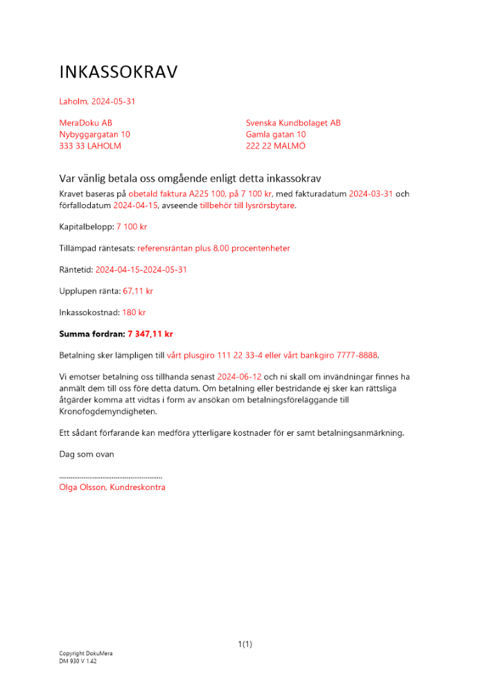 Produkter taggade med 'inkasso påminnelse krav kravbrev dröjesmålsränta dröjemålränta räntefaktura Påminnelsefaktura påminnelsefaktura inkassobrev Inkassokravsbrev fordran inkassolagen inkassokrav fordringsägare gäldenär skuld inkassoavgift'