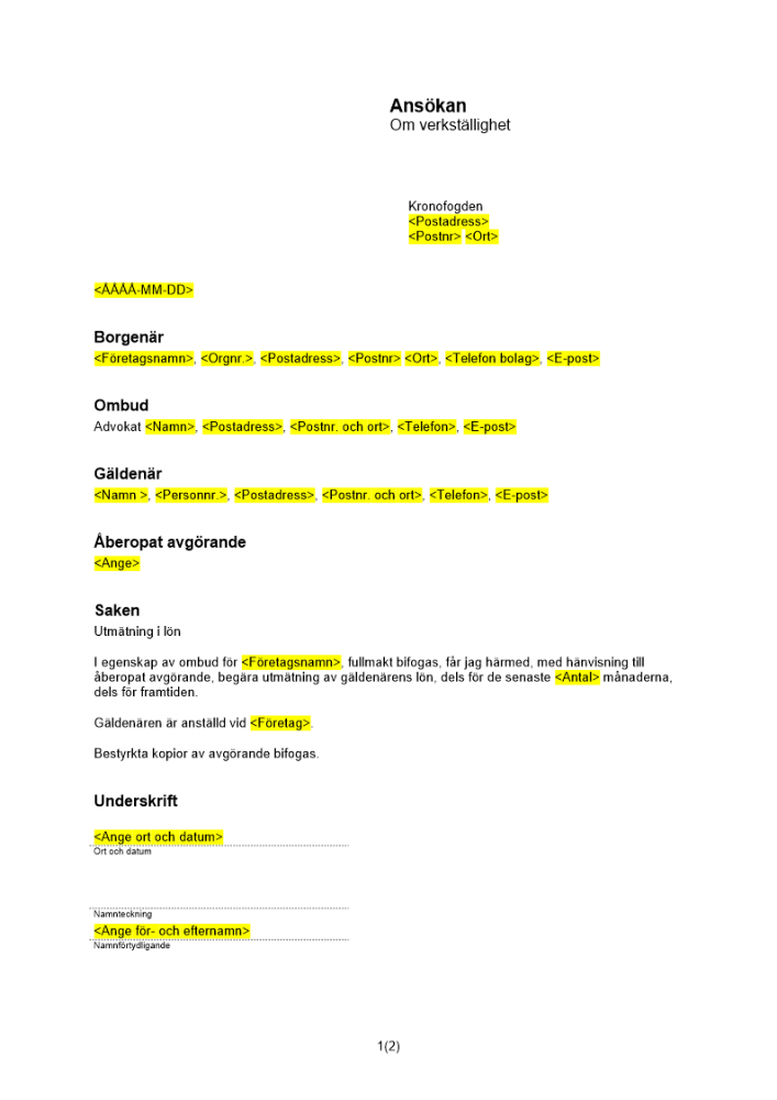 Produkter taggade med 'ansökan verkställighet utmätning lön kronofogdemyndigheten kronofogde'