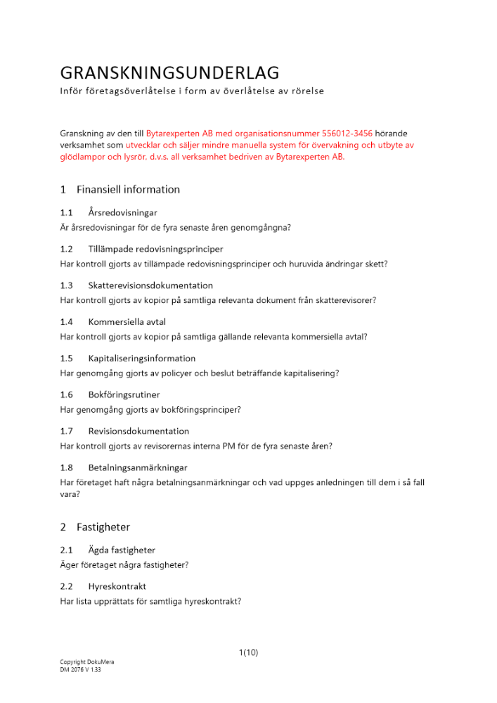 Produkter taggade med 'företagsavta värdering av aktie genomgång ägarbyte Företagsöverlåtelseavtal rörelse Granskningsunderlag företagsöverlåtelse rörelse företagsgranskning Due Diligence inkråmsöverlåtelse'
