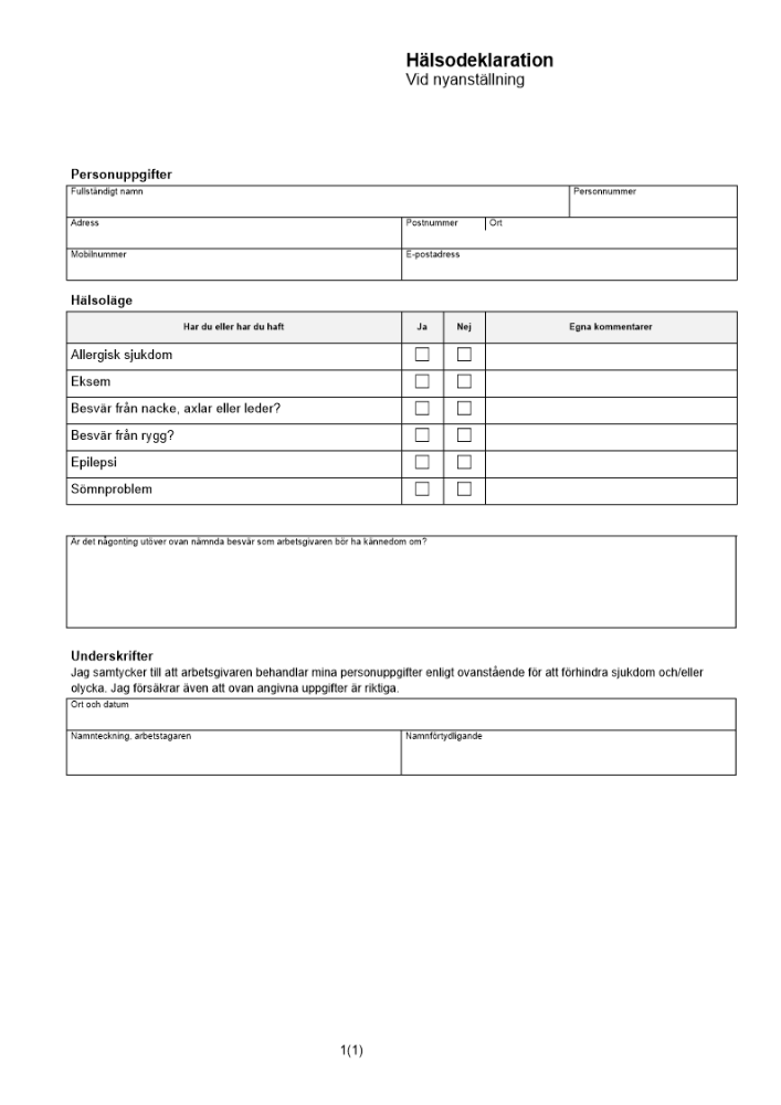 Produkter taggade med 'Hälsodeklaration hälsa personal rekrytering anställning smitta sjukdom'