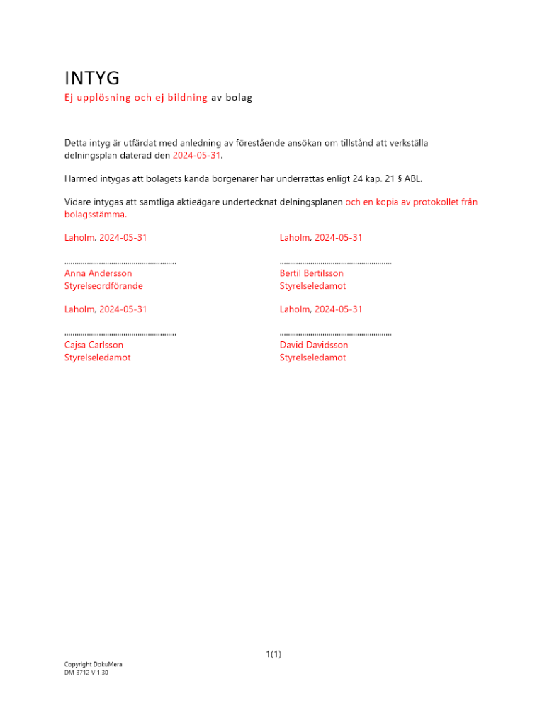 Produkter taggade med 'Intyg delningsplan bolagsverket registrering borgenärer underrätta'