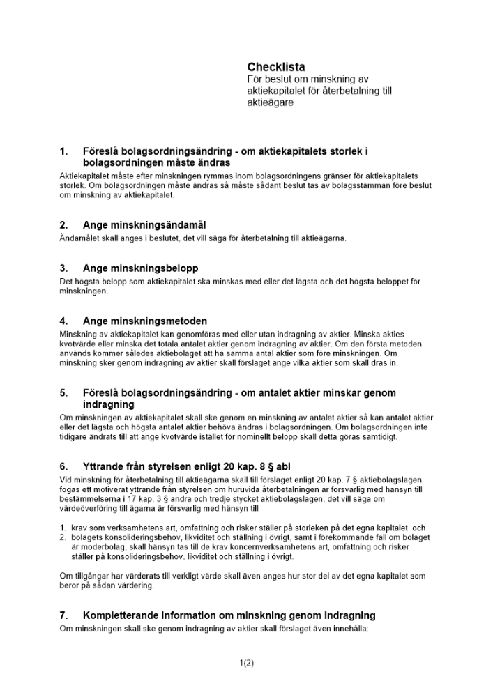 Produkter taggade med 'Checklista minskning aktiekapital återbetalning beslut'