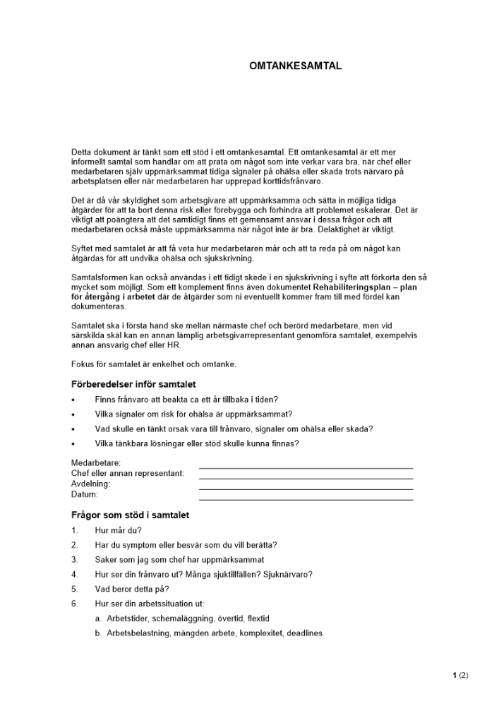 • Arbetsplatsträffar