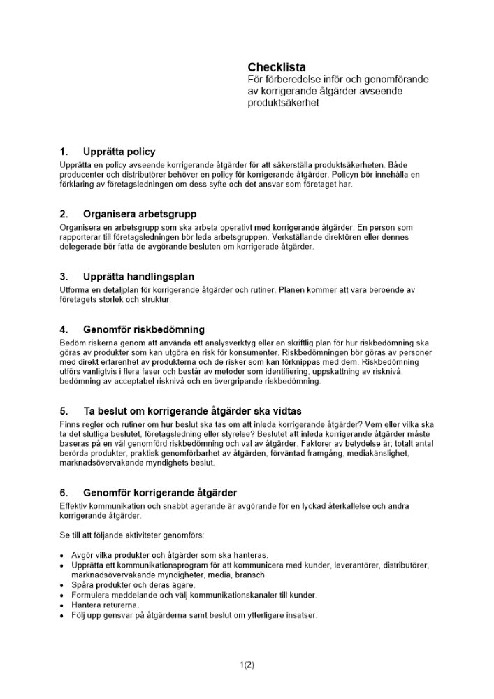 Produkter taggade med 'kvalitet kvalitetssäkring Checklista åtgärder produktsäkerhet korrigera rätta till rättning produkt'