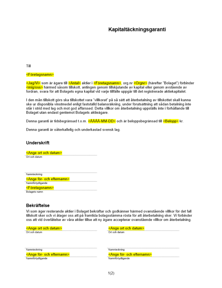 Produkter taggade med 'Kapitaltäckningsgaranti villkorat aktieägare kapital aktiekapital aktieägare bolag'