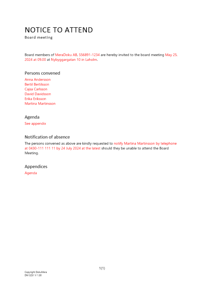 Produkter taggade med 'Kallelse styrelsemöte engelska styrelse'