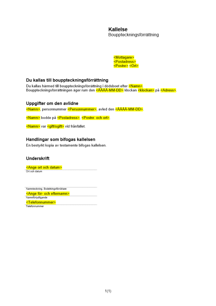 Produkter taggade med 'bouppteckning bouppteckningsförrättning arv testamente förrättning kallelse'