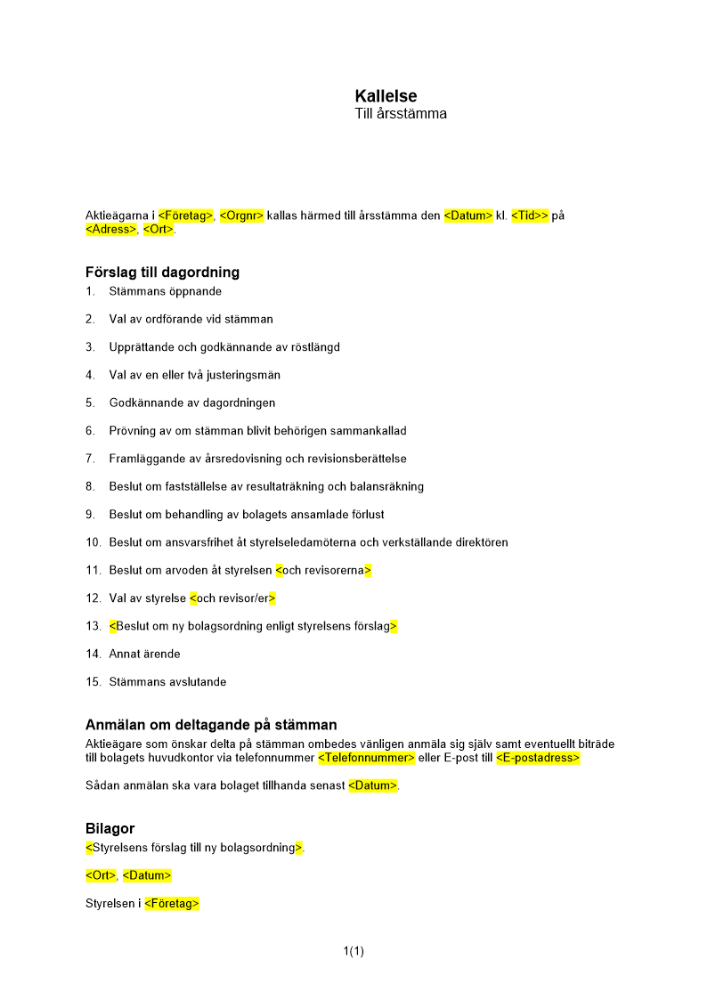 Produkter taggade med 'kallelse bolagstämma kallelse bolagsstämma '