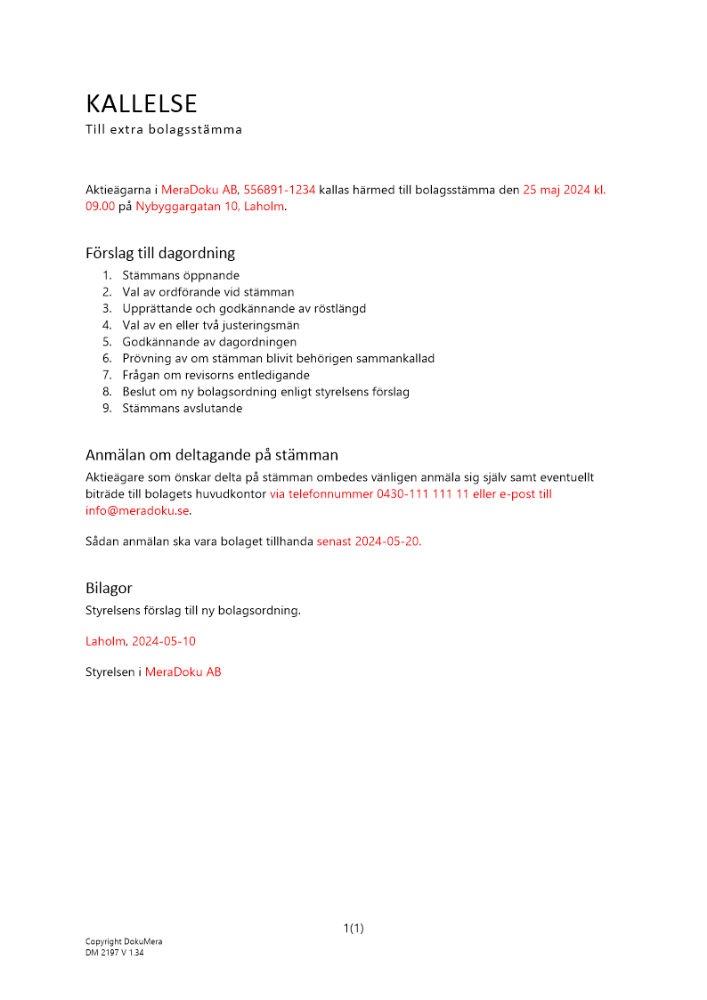 Produkter taggade med 'kallelse bolagstämma kallelse bolagsstämma Kallelse extra bolagsstämma ny bolagsordning Publika aktiebolag privat aktiebolag dagstidning'