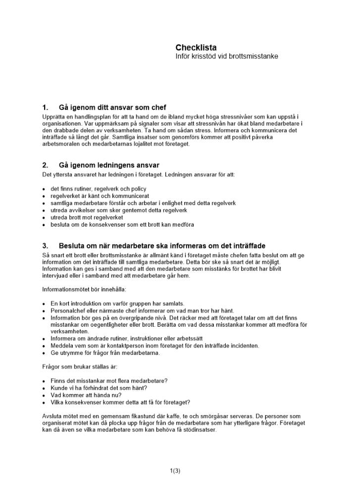 Produkter taggade med 'Checklista krisstöd brottsmisstanke brott stressreaktioner incident stödinsatser informationskanal'
