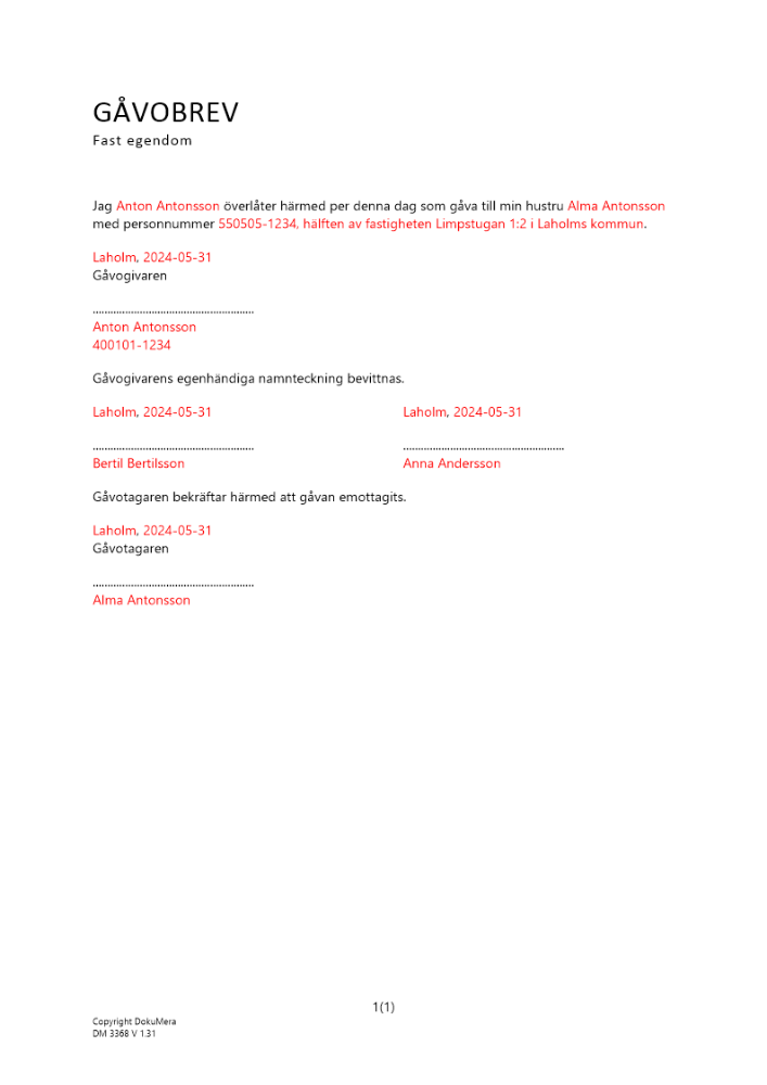 Produkter taggade med 'Gåvobrev gåva mellan makar gåva fast egendom hus enskild egendom borgenärer'