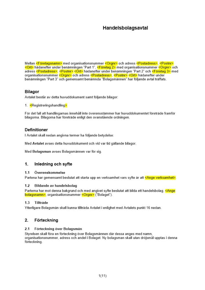 Produkter taggade med 'Handelsbolagsavtal tre ägare handelsbolag solidariskt ansvariga näringsverksamhet Bolagsverket'