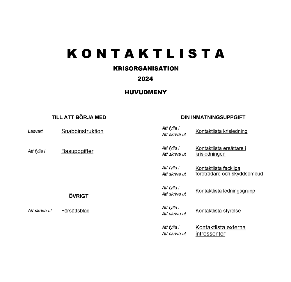 Produkter taggade med 'Kontaktlista krisorganisation krisledning skyddsombud krisstödsorganisation krissituation olycka'