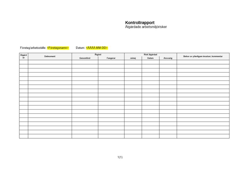 Produkter taggade med 'kontrollrapport arbetsmiljö risker arbetsmiljörisker'