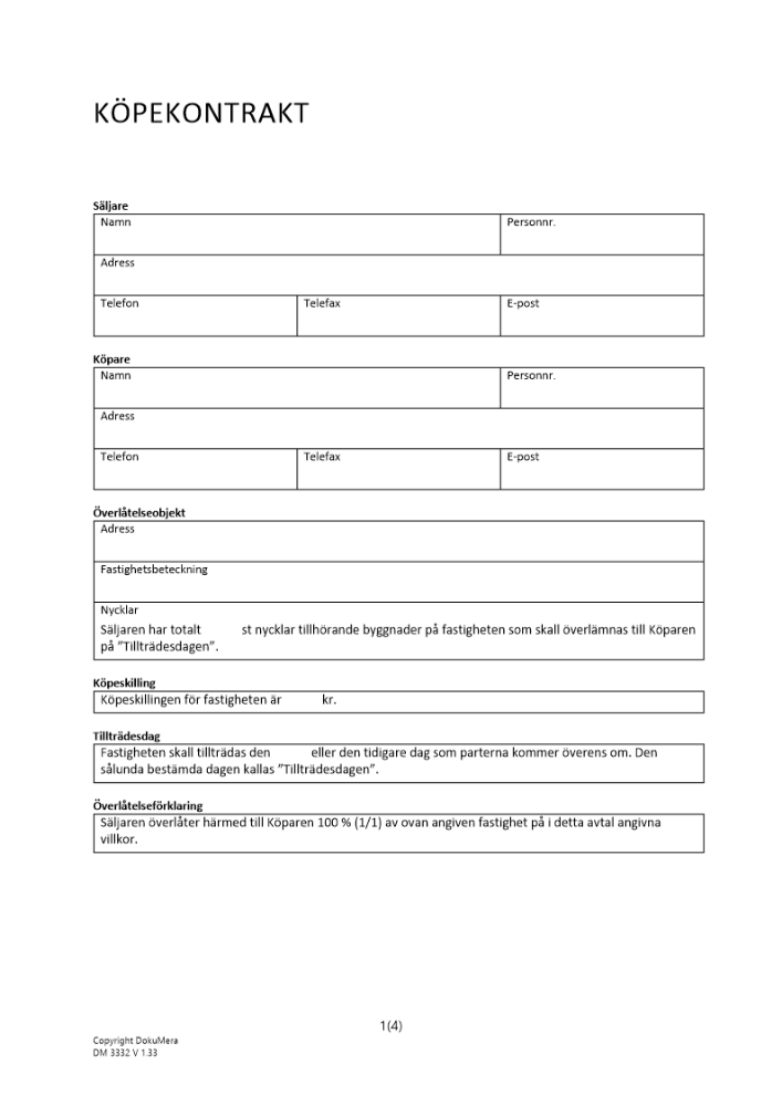 Produkter taggade med 'Köpekontrakt Villa fritidshus köpebrev köpeskillingen lagfart undersökningsplikt Köplagen fastighet'