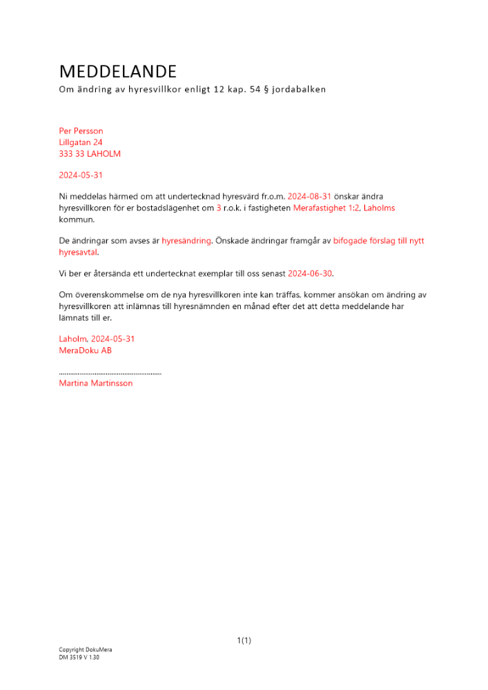 Produkter taggade med 'Meddelande hyresvillkor hyra ändring ändrade villkor hyra hyreshöjning'