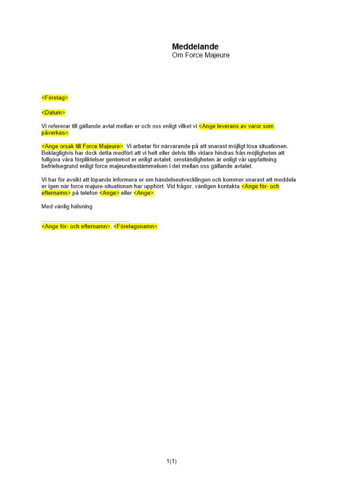 Produkter taggade med 'Force majeure force majeure fors avtal friskrivning högre makter hinder avtalspart'