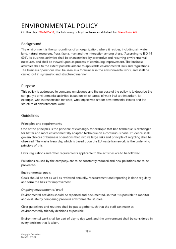 Produkter taggade med 'Miljöpolicy miljö engelska policy miljöarbete'