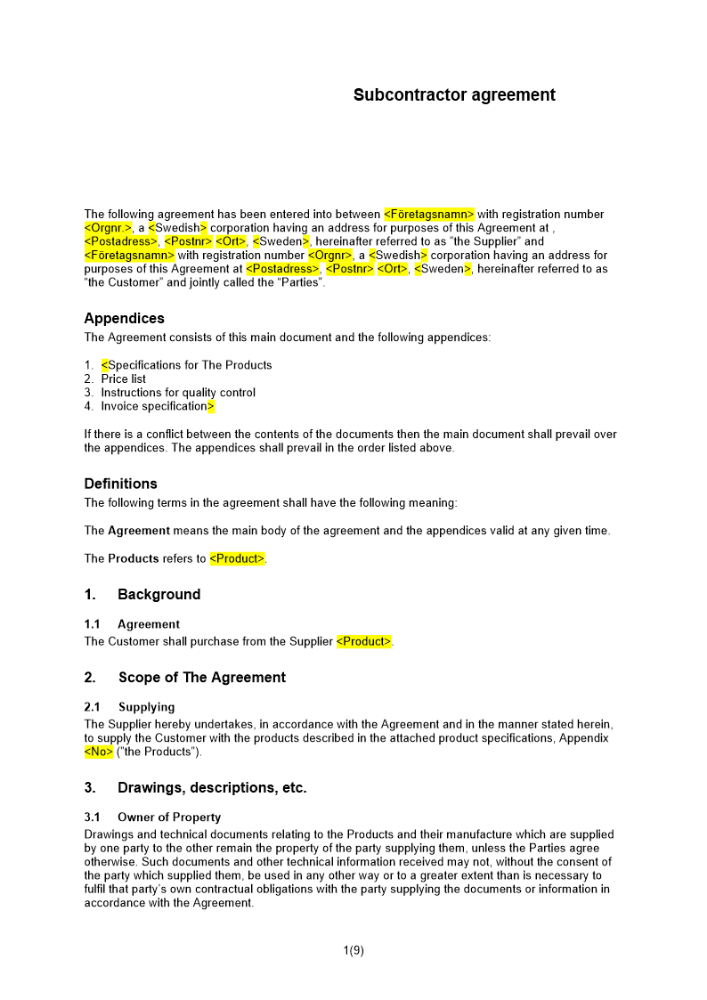 Produkter taggade med 'underleverantörsavtal underleverantör huvudleverantör kund vara tjänst avtal leverantör engelska'