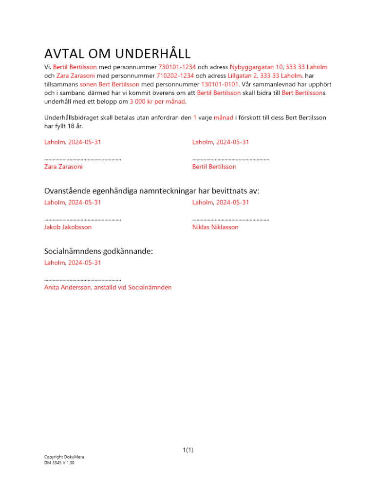 Produkter taggade med 'avtal sambo barn underhåll överenskommelse föräldrar'