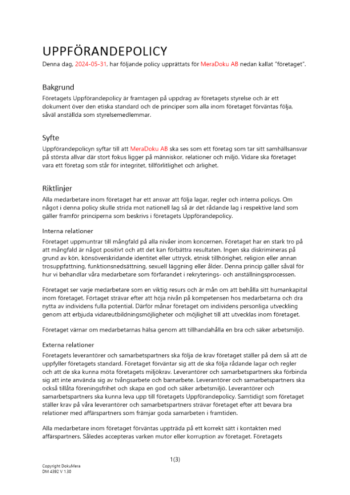 Produkter taggade med 'Uppförandepoilcy uppförande policy policydokument'