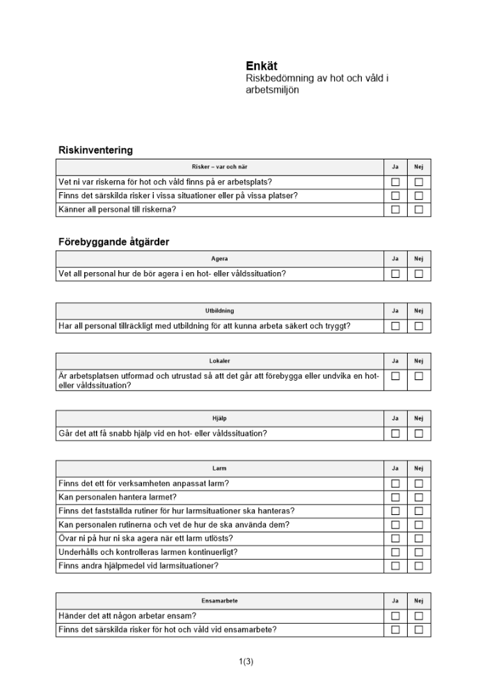 Produkter taggade med 'hot och våld arbetsmiljö riskbedömning arbetsmiljö risk ensamarbete'